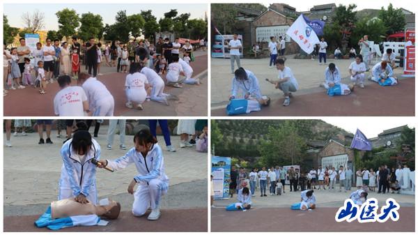 在小西沟文旅康养小镇开展心肺复苏急救术推广。实践队队员们认真向民众讲解心脏骤停的最佳抢救时间,说明了心肺复苏黄金4分钟的重要性和掌握心肺复苏的必要性。专业的操作、整齐划一的动作赢得现场掌声雷动。