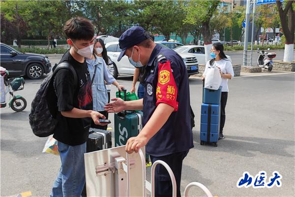9月7-8日,我校迎来2022年秋季学期学生返校报到。为保障返校生的健康安全,落实省市疫情防控工作要求,9月7日0点,我校中都、迎泽校区同时按下了“暂停键”,校门实行封闭式管理,原则上“只进不出”,学校各防控工作专班工作人员第一时间到住校办公。为全力保障在校师生的学习生活,学校克服一切困难做好学生接送站、细化网格管理、保障校园防疫及生活物资,及时开展周到细致的服务,全力做好静态管理期间师生的关心关爱工作,让“暖心医大”在师生间传递。