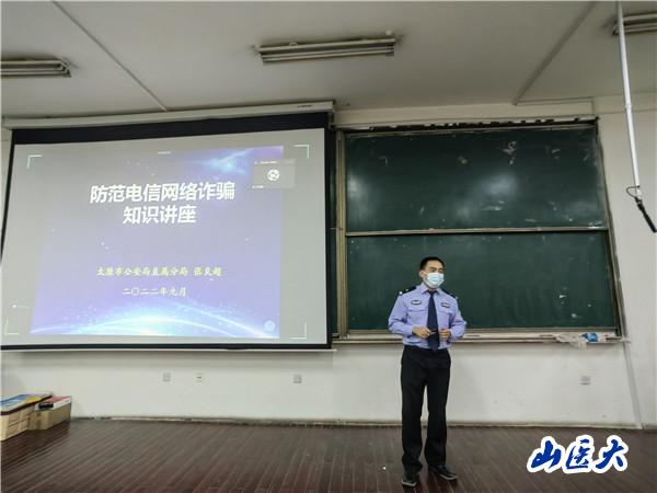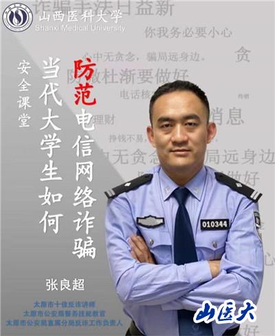 为了增强广大学生的反电信诈骗意识,提高自我保护能力,麻醉学院于9月28日晚20:00在迎泽校区C座20教进行了安全教育主题活动,活动邀请了太原市十佳反诈讲师、太原市公安局警务技能教官、太原市公安局直属分局反诈工作负责人张良超警官,开展了以“当代大学生如何防范电信网络诈骗”为题的讲座,麻醉学院党总支副书记杨洁出席了本次活动,麻醉学院全体学生线上线下同步参加活动,活动由范晋楠主持。