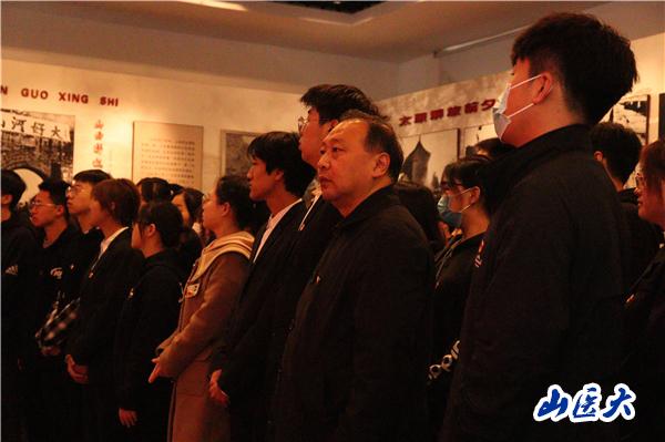 党员代表在烈士纪念碑前深情诵读了《人民英雄纪念碑碑文》《蝶恋花 答李淑一》《为人民服务》《可爱的中国》和党的二十大报告节选;全体师生缓步绕行烈士纪念碑并献花,瞻仰烈士墓地;跟随讲解员参观了太原解放战役展厅和双拥纪念馆展厅,观看了珍贵的革命历史图片和实物展示,重温了解放太原的峥嵘岁月和感人事迹;基础医学院党委副书记刘霞带领大家重温入党誓词,同学们用铿锵洪亮的誓言,深切缅怀革命先烈的丰功伟绩。