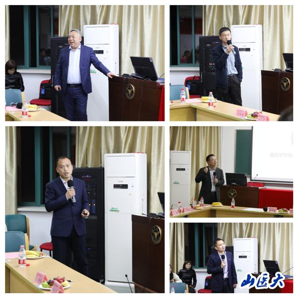 在交流环节,药学专业校友王鹏、公卫专业校友王爱忠、口腔专业校友弓国梁、临床专业校友杨志杰和张红斌分别就自己的专业与工作做了主题交流,向与会校友和老师们汇报了他们毕业以来的工作与心路历程。他们的发言有的激情澎湃,有的娓娓道来,有的情真意切,都饱含着对母校的深情与祝福,不时激起大家热烈的掌声。