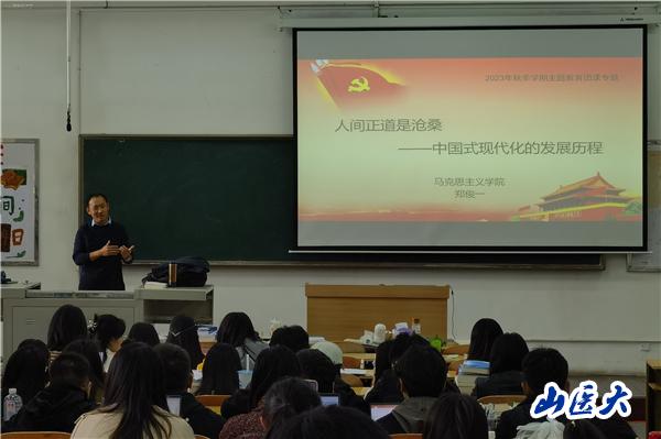为引导团员青年进一步深学细悟党的二十大精神,坚定理想信念,勇于挺膺担当,公共卫生学院分团委于10月23日-24日在迎泽校区和中都校区分别举办了2023年度第二期团课培训,邀请了马克思主义学院郑俊一老师主讲,学院640余名学员参加。
