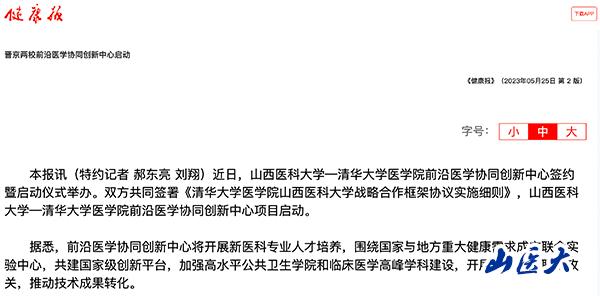 健康报 | 晋京两校前沿医学协同创新中心启动